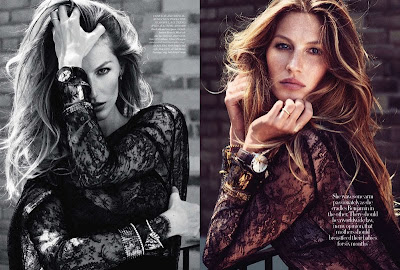 Styled by Sophia Neophitou-Apostolou in smart and sexy ensembles, Gisele shines in garments of sheer lace and black.